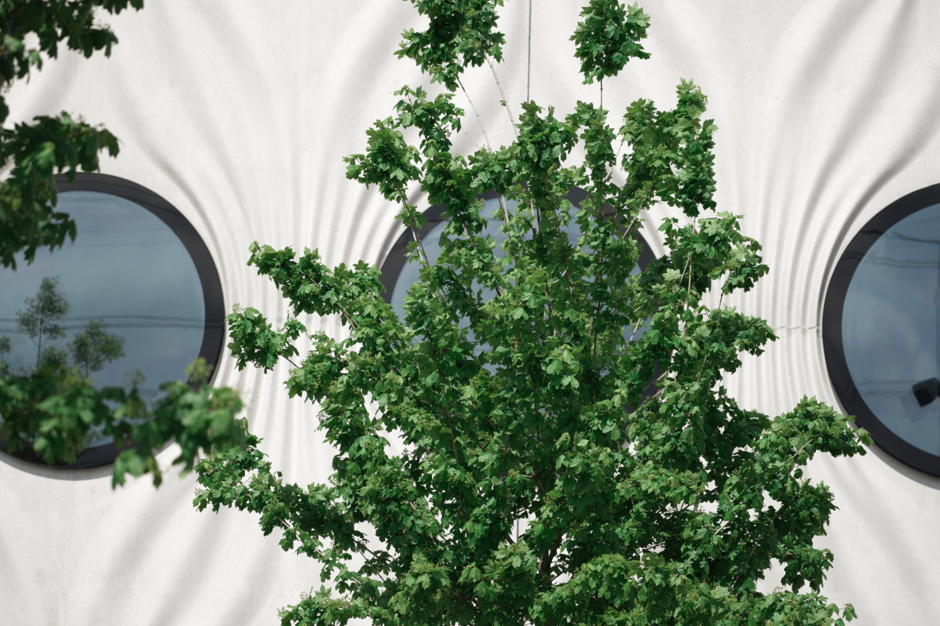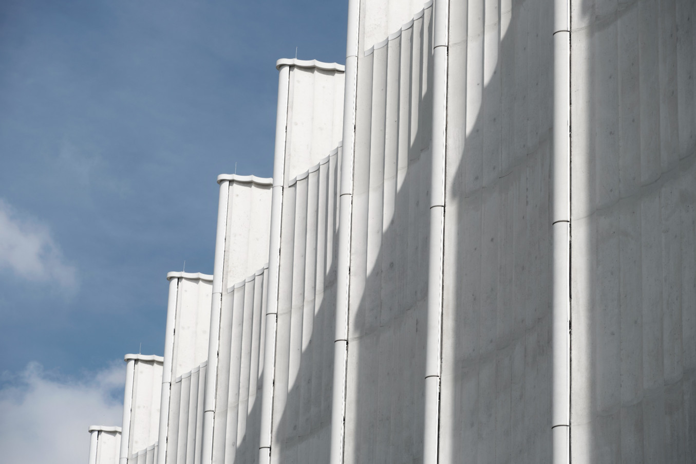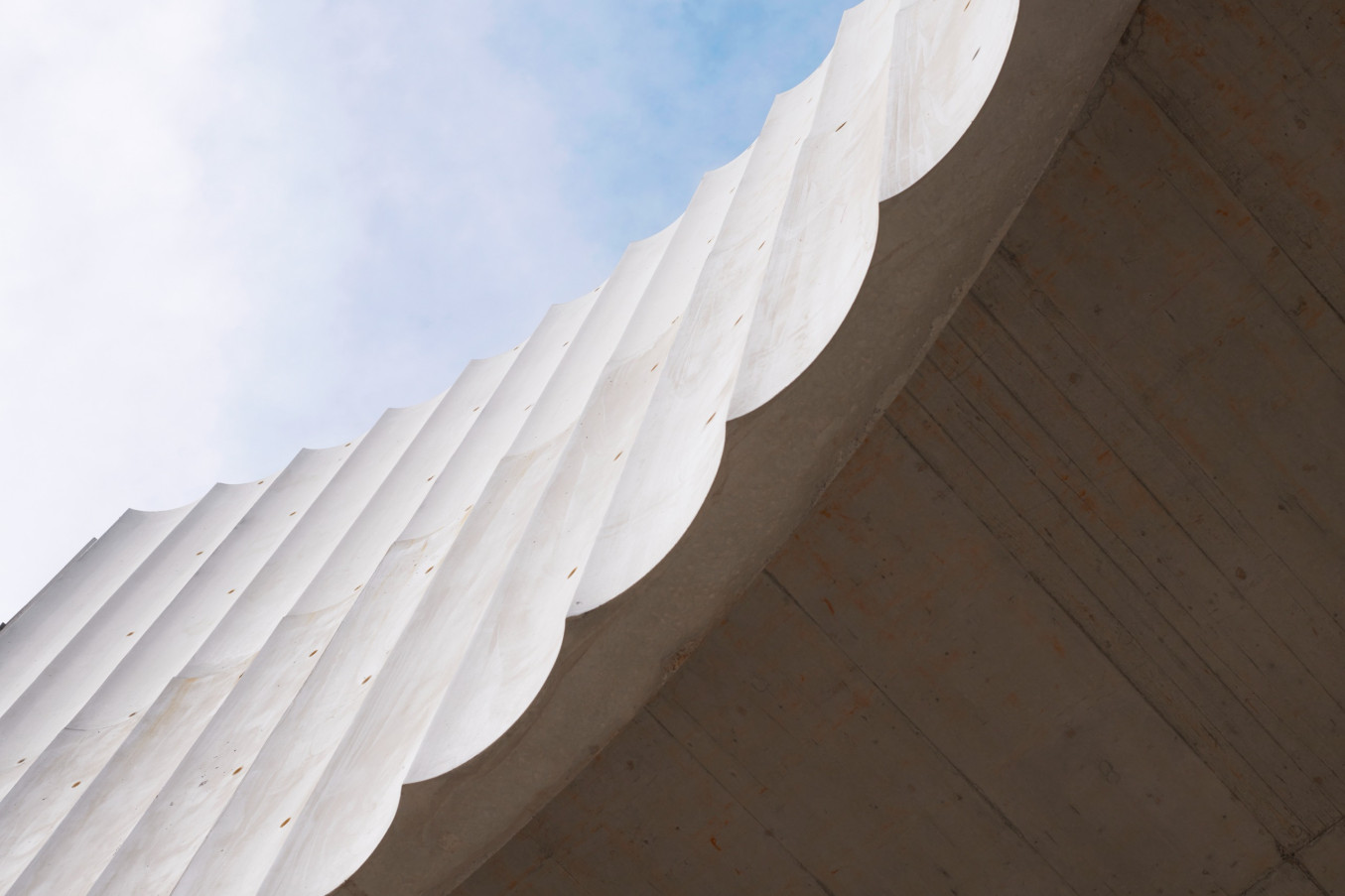 - Exposed concrete facade in white cement with textile character